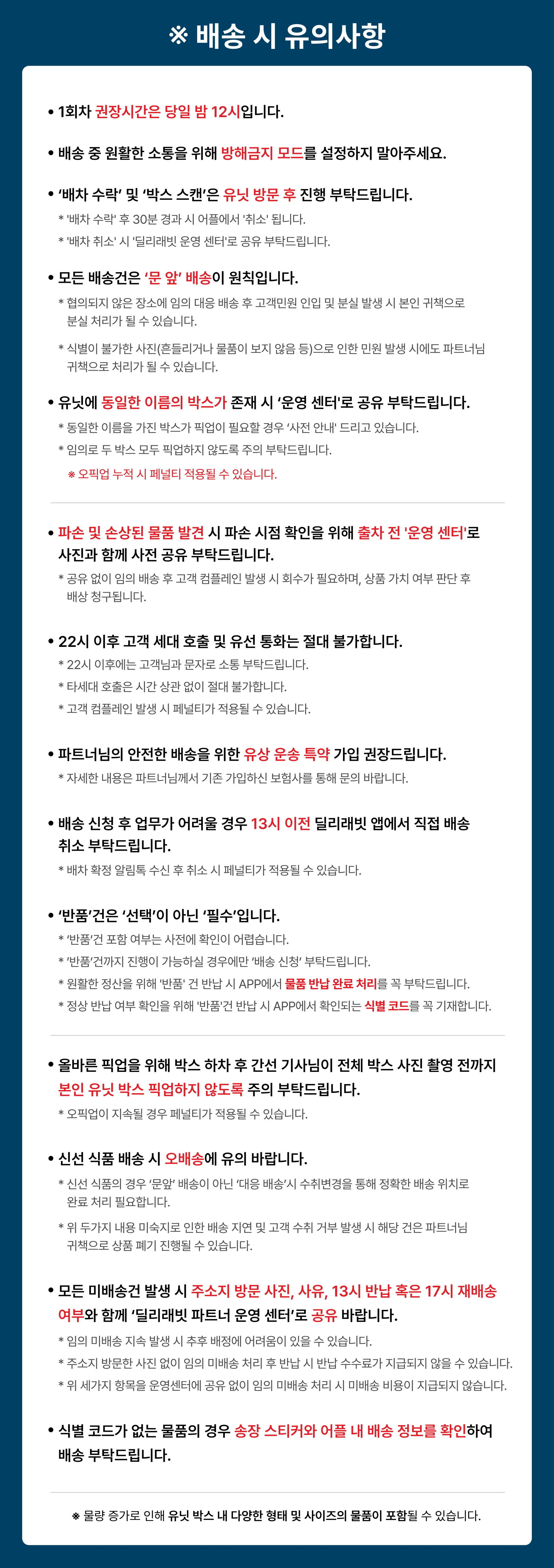 파트너님의 안전한 배송을 위하여 꼭 확인해 주세요.