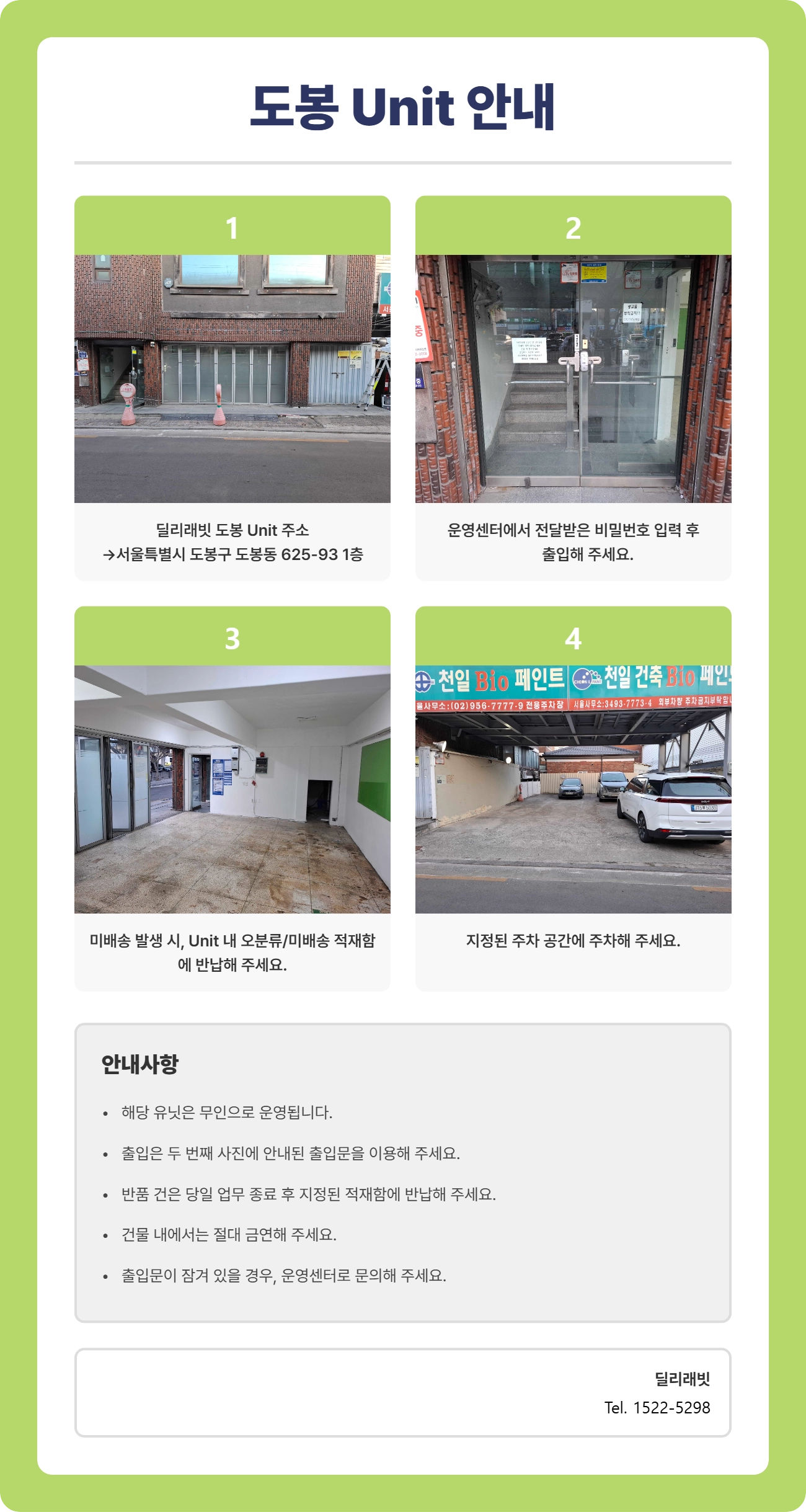 도봉 유닛 1회차 배송시간 : 17:00~00:00